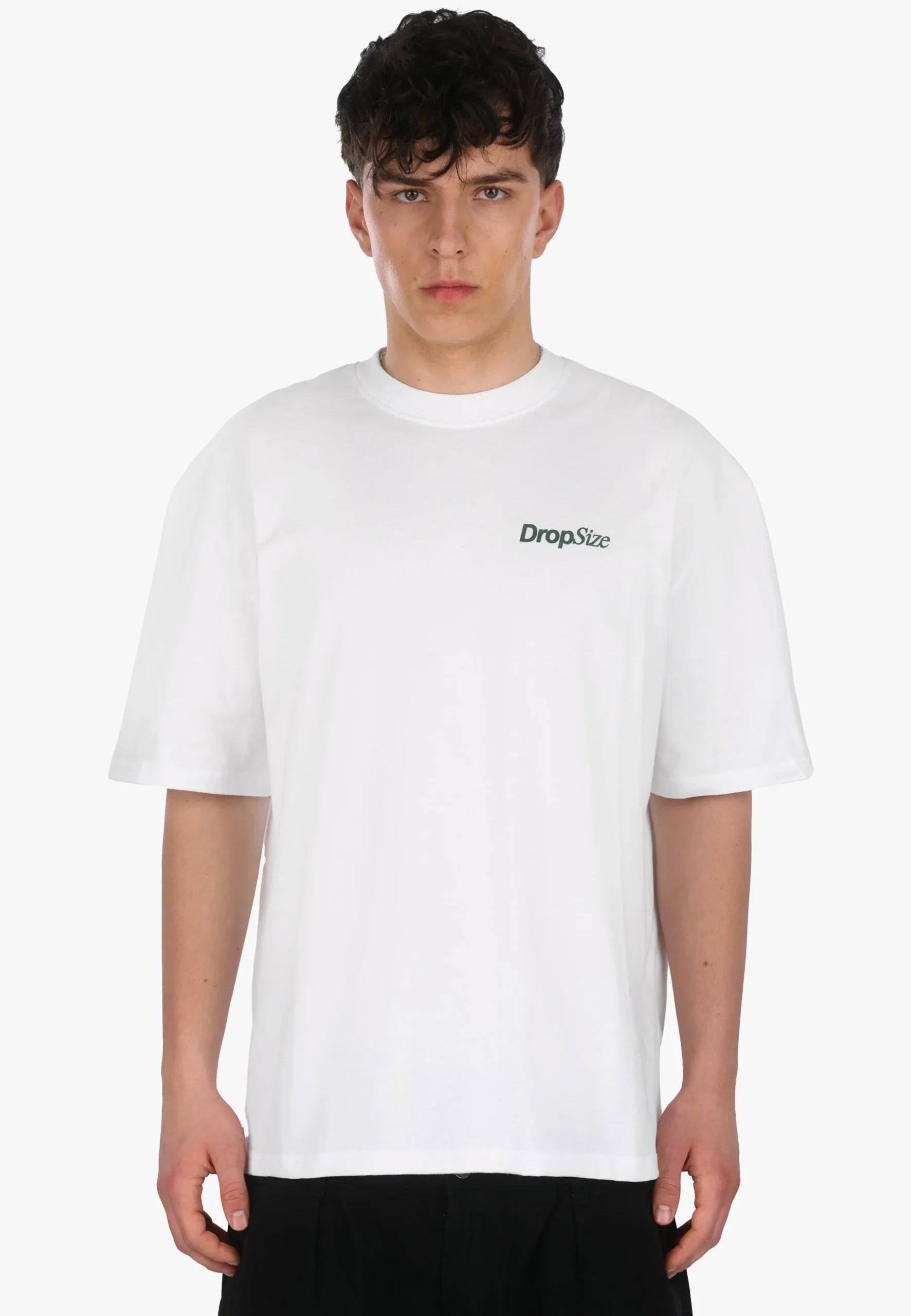 Logo: Großflächiger grüner „DropSize“-Grafikdruck auf dem Rücken mit dem „Daily Hustle Club“-Branding.